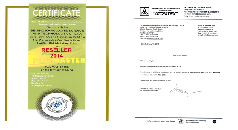 多年來,北京康高特科技有限公司通過與國外知名公司的合作,取得了*優(yōu)惠條件供應(yīng)儀器設(shè)備的資格。其中,白俄羅斯Atomtex公司和Polimaster公司的多款儀器設(shè)備一路暢銷,獲得眾多好評。今年Atomtex公司和Polimaster公司按流程對我公司進(jìn)行二次審核,根據(jù)我公司良好經(jīng)營狀況、規(guī)范經(jīng)營體系以及不斷發(fā)展壯大的規(guī)模,ATOMTEX公司和Polimaster公司延長我公司在華代理權(quán)時(shí)限。今后,北京康高特科技有限公司,將繼續(xù)為大家推出Atomtex公司和Polimaster公司高品質(zhì),低價(jià)格的先進(jìn)儀器設(shè)備。