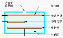 電化學(xué)測試方法又稱為定電位電解法,是*對二氧化硫的標(biāo)準(zhǔn)測定方法之一。(HJ/T 57-2000《固定污染源排氣中二氧化硫的測定定電位電解法》)。其核心器件電化學(xué)傳感器的結(jié)構(gòu)如圖。