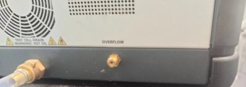 為保證試驗(yàn)結(jié)果準(zhǔn)確,每次試驗(yàn)都需要清洗電極,用測試油沖洗2-3次,每次測試結(jié)束后也會(huì)自動(dòng)排油(可設(shè)置,也可手動(dòng)排油)。排油口需平放置桌面,避免排油時(shí)油液倒流使油從溢油口溢出。