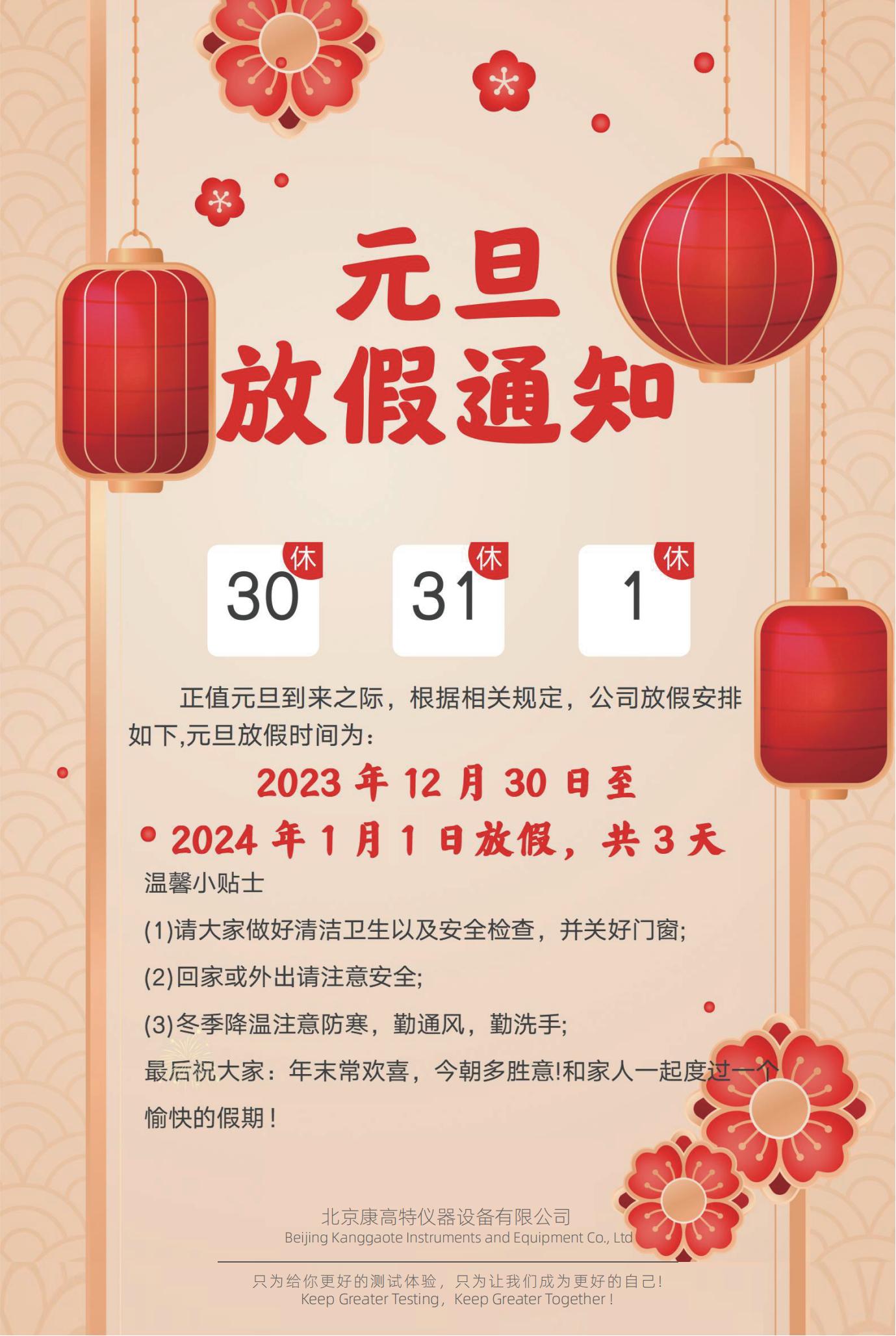 北京康高特儀器設(shè)備導(dǎo)讀:*3天,迎接2024。元旦即將來臨,提前祝大家新年快樂!